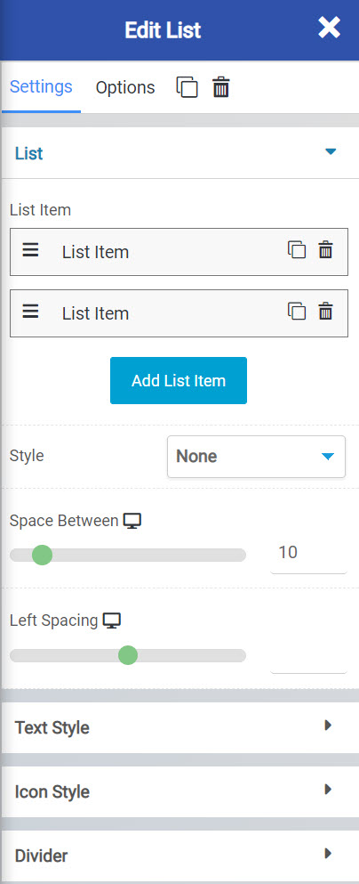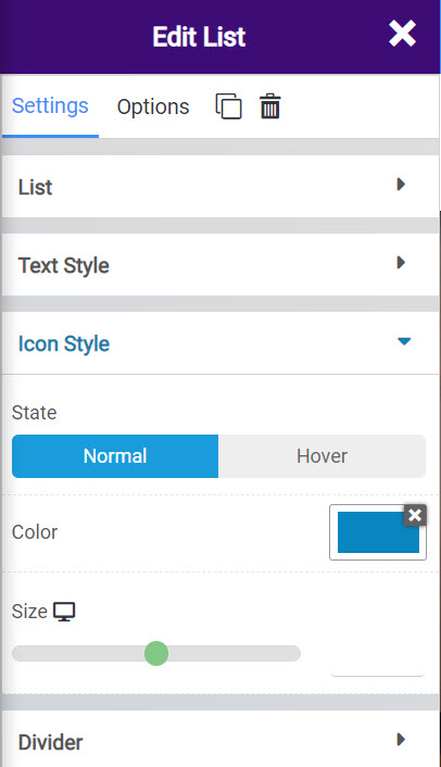 The List Widget is useful when you need to add items to your site in a listed format. You can choose from hundreds of icon options to lead your list as bullet styles, as well.