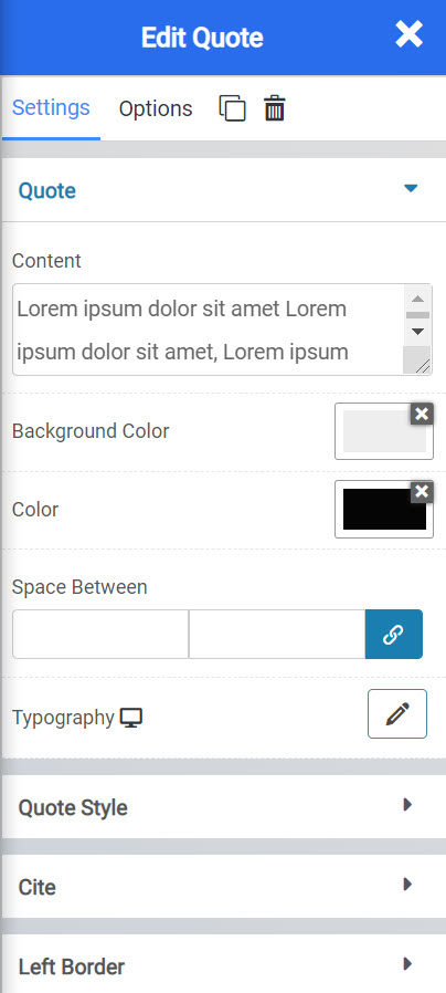Beneath Edit Quote, the “Options” tab allows you to control the following settings: