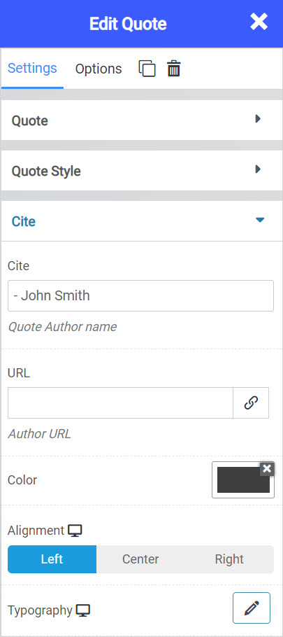 - Make sure your quote citation is present using the Cite Settings where you can set a Name for the Author of the quote.