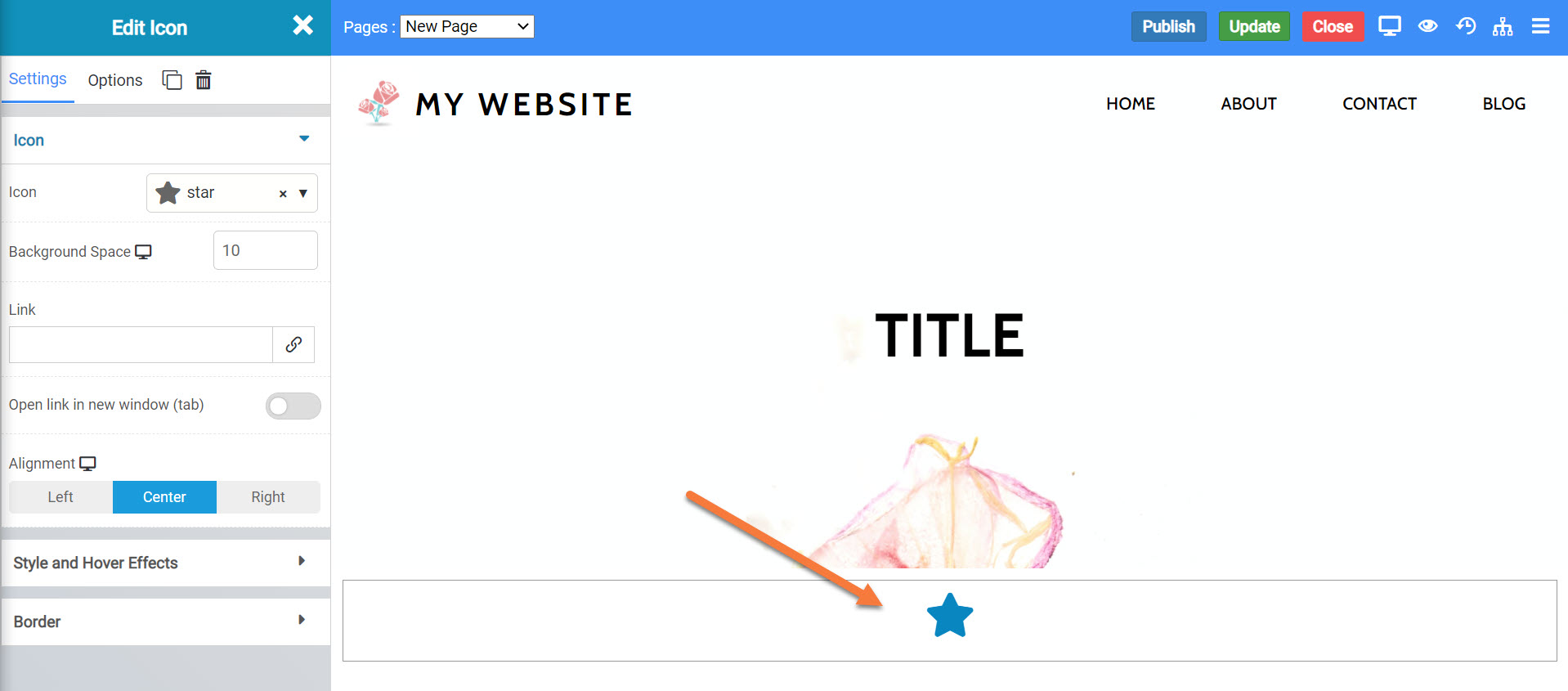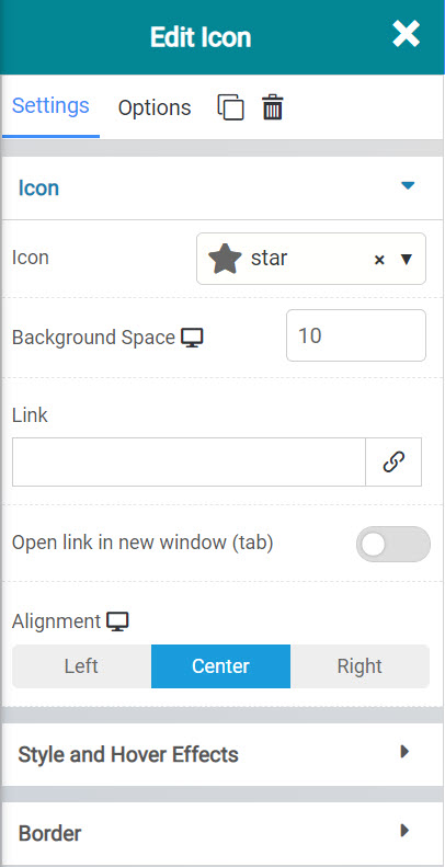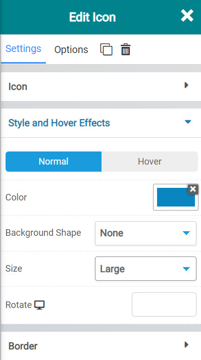 - In the Style and Hover Effects, you can set a Hover or Normal effect for the Icon.