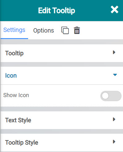 The Icon option allows you to insert an icon next to the tool tip widget text. You can choose from hundreds of icons.