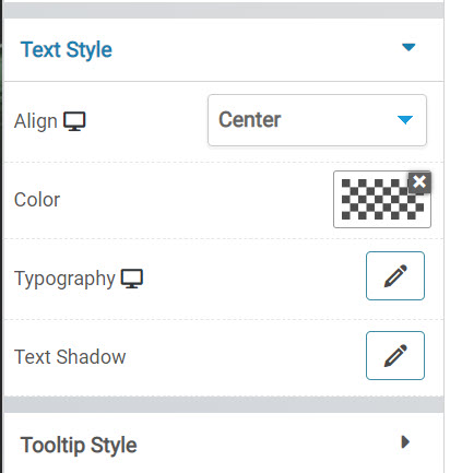 The Tooltip Style settings allow you to change settings related to the text that is inside the tooltip. I.e. the text which appears when the user hovers over the widget.