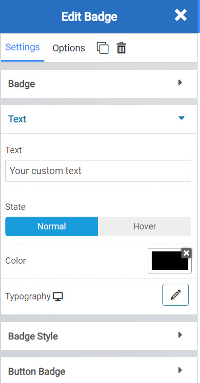 The Text options allow you to change the text that is adjacent to the Badge and the way it looks. You can choose from these settings:
