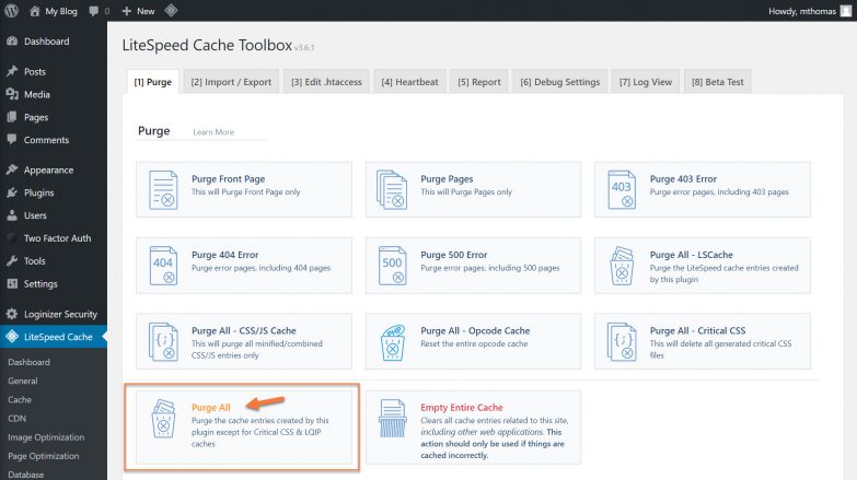 How to Clear LiteSpeed Cache in WordPress – Option 1