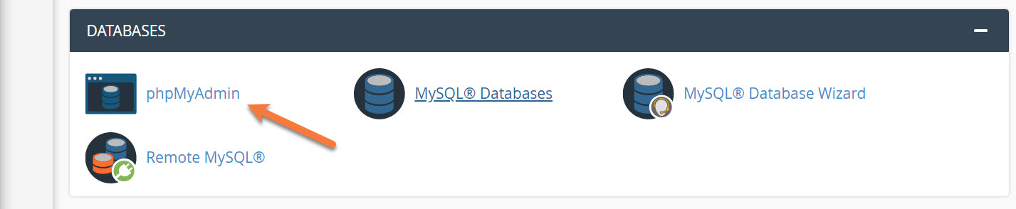 Now, you should have your cPanel open. Navigate to the Databases area and click the phpMyAdmin option to open the application.
