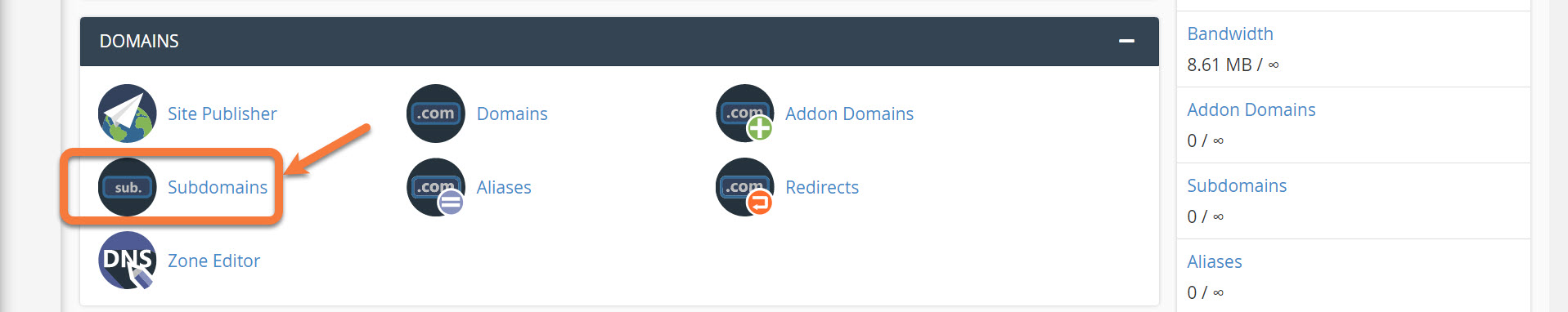 Step 3: To have your static content, such as CSS Stylesheets, Images, and Videos served on a subdomain, you’ll need to create the subdomain first. In this case, we’re going to call our subdomain ‘static’, without the quotes around it.