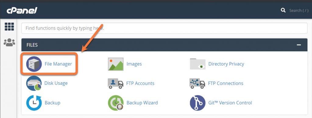 Once your cPanel has opened, under the FILES area, open the File Manager.
