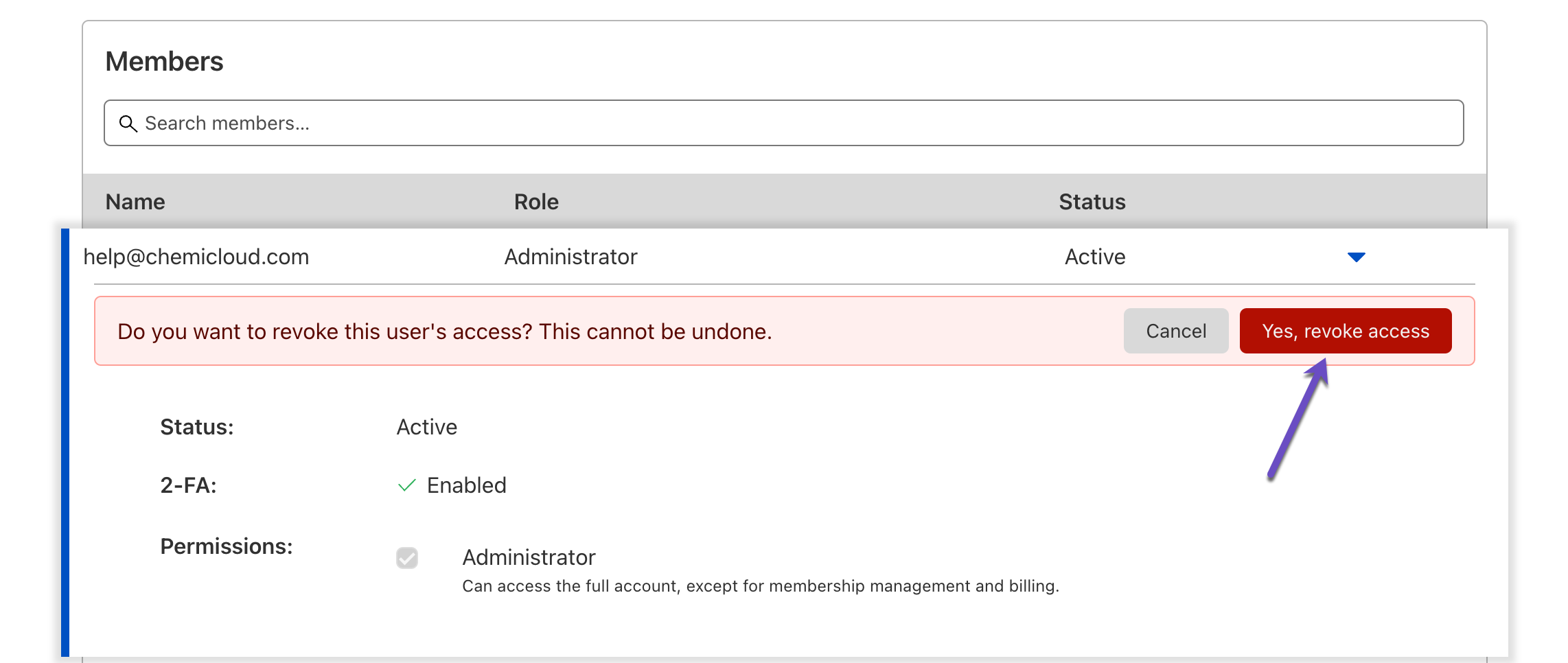 You will be asked to confirm the action. Simply click Yes, revoke access to remove this Member.
