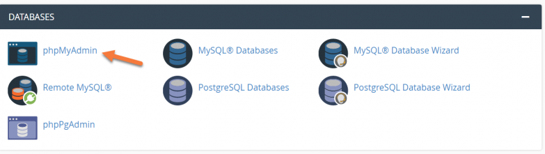 Step 2: Once your cPanel is open, scroll down to the Database section and click the phpMyAdmin app to open the utility.