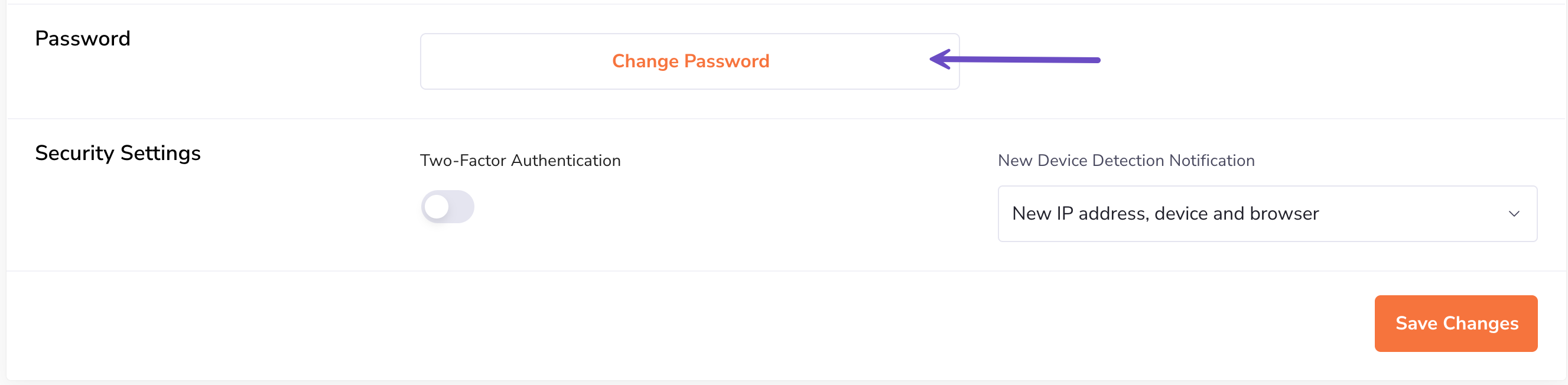 Step 4: Navigate to the Password section and click the Change Password button.