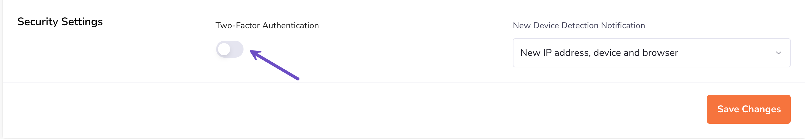 Step 4: Navigate to the Security Settings section and toggle the button for Two-Factor Authentication to ON.