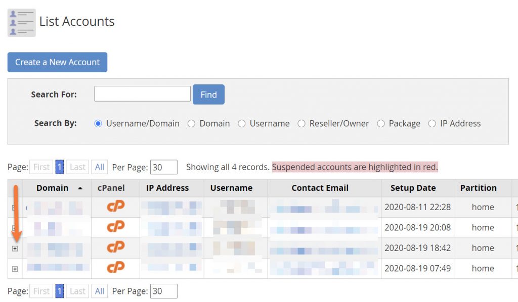 Step 2: Once you’ve logged in to WHM, click List Accounts.
