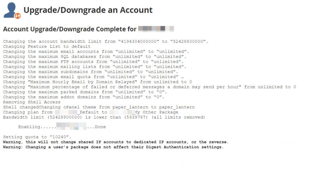 And that’s it! Now you know how to change the bandwidth for an account in your WHM by changing the package it has been assigned!