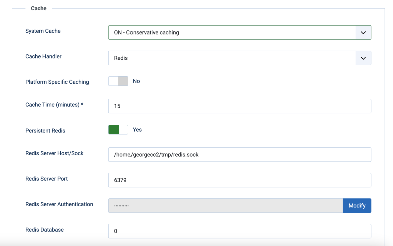 Redis Server Host/Sock: Enter the Redis socket path from cPanel