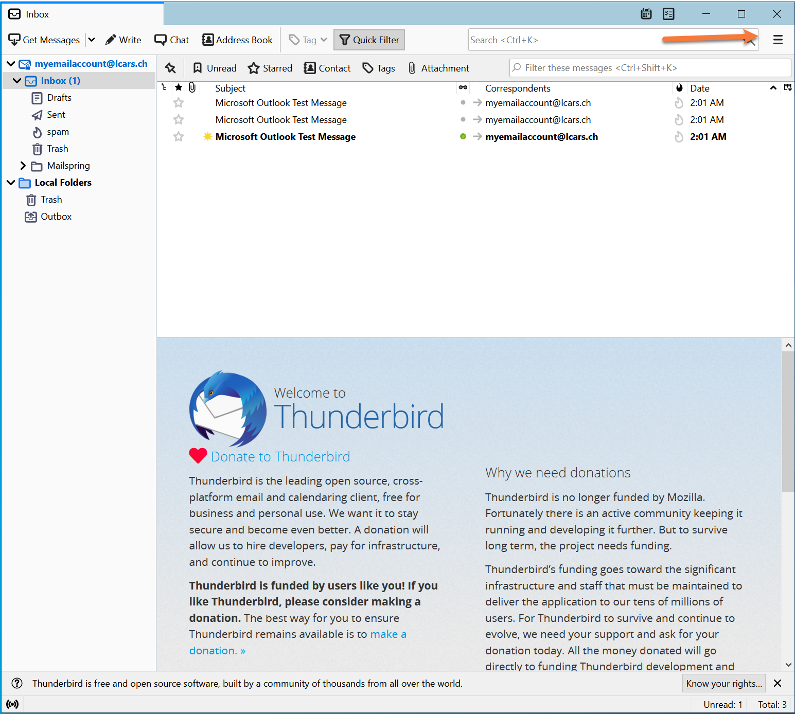logo in the bottom left corner of your taskbar on your keyboard type mail, then select Thunderbird from the search results.