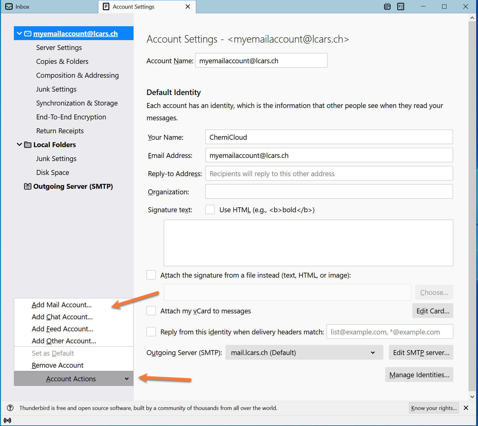 Step 4: The Account Settings window will open. In this window, you have the option to edit the settings for accounts you have already added to Thunderbird, as well as add new ones.