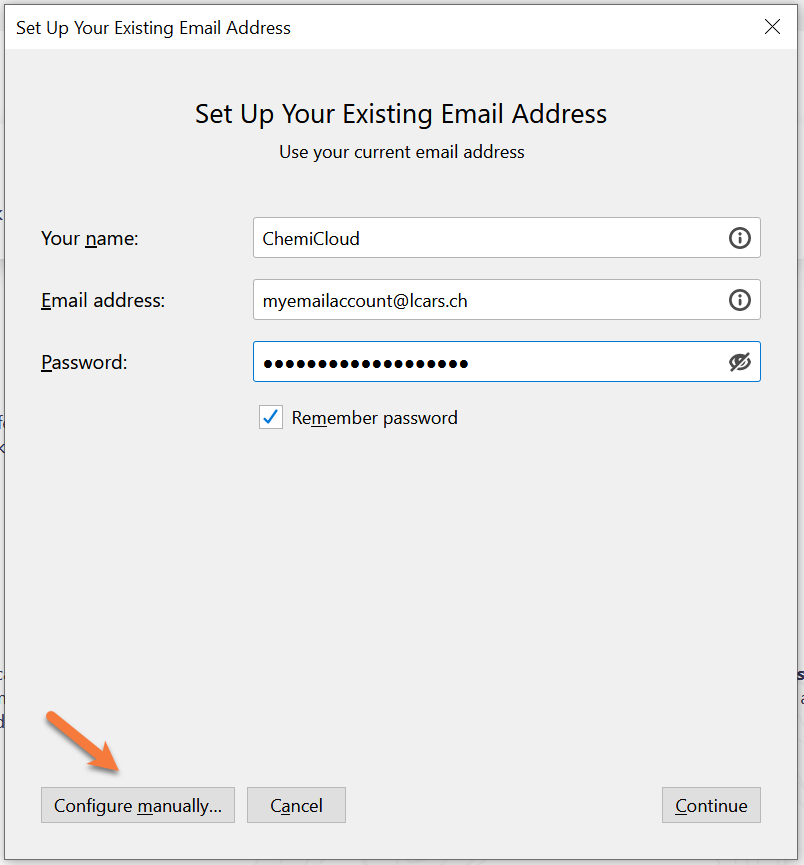 In the bottom left, click Configure manually. The window will expand so you can enter server and protocol information.