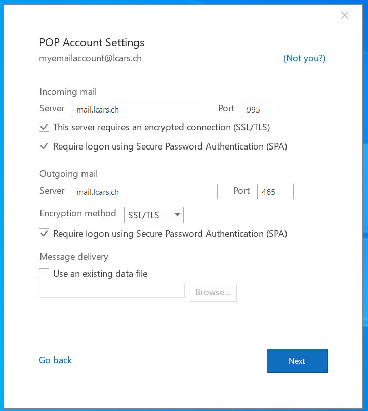Step 7: Enter the accounts incoming and outgoing mail server settings.