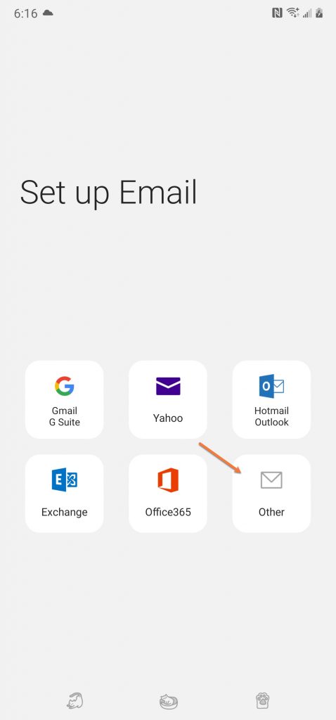 Step 1: If you haven’t downloaded and installed Samsung Email, you can click here to open the Play Store to do so. The very first time you open Samsung Email, you’ll see a screen like the one below: