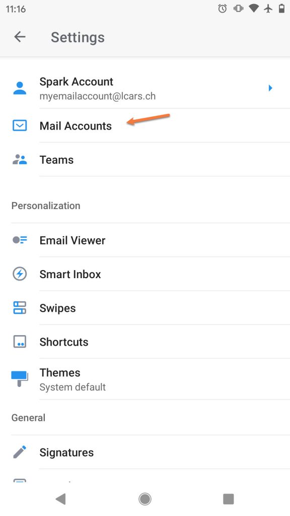 Step 3: Tap Mail Accounts to open the list of accounts added in Spark.