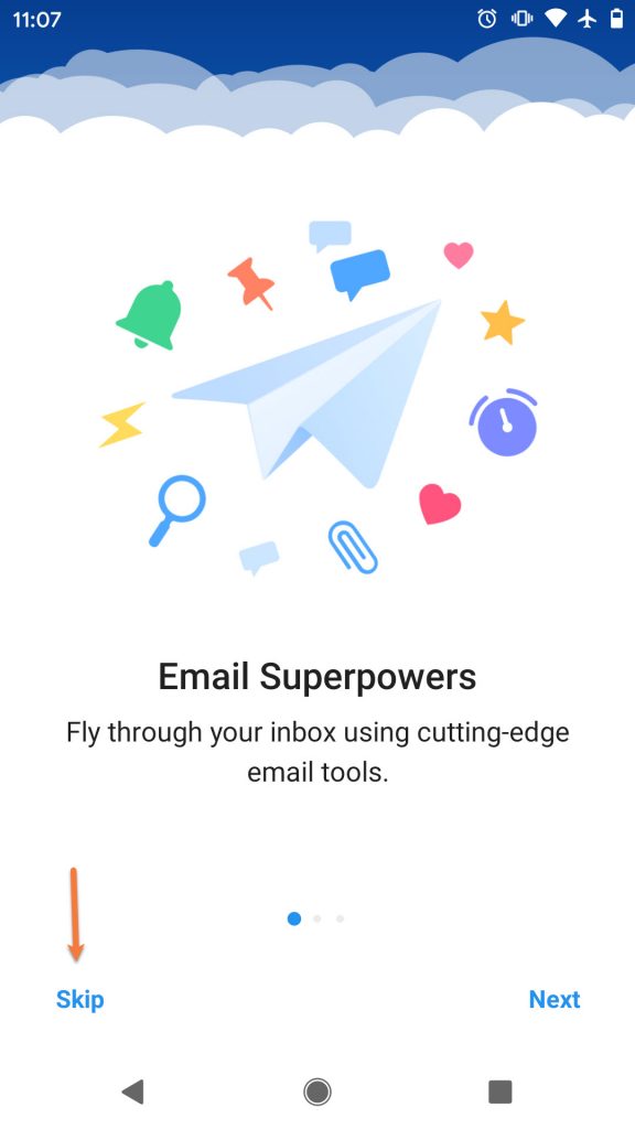 You can tap Next if you wish to review some of the features of Spark, however for the purpose of this guide, we’re moving forward by tapping Skip.