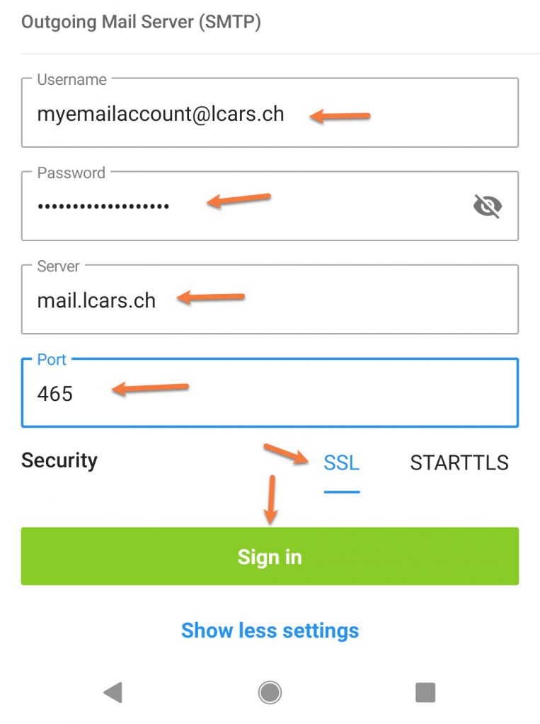 And lastly, ensure SSL is selected next to Security. Your settings should look similar to the ones below: