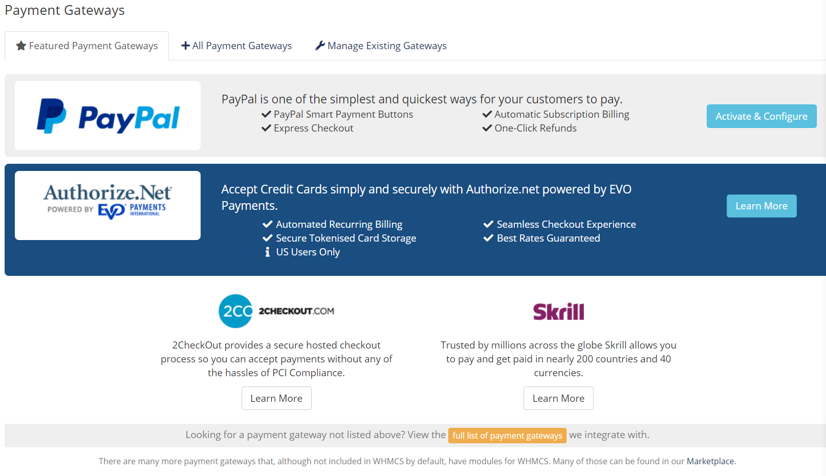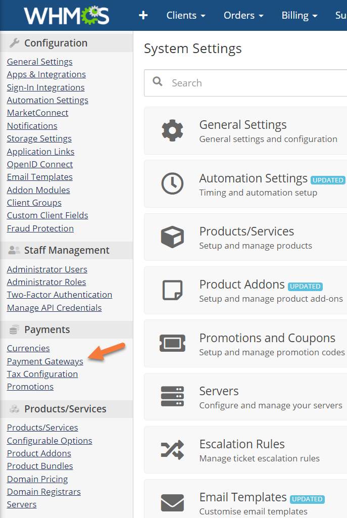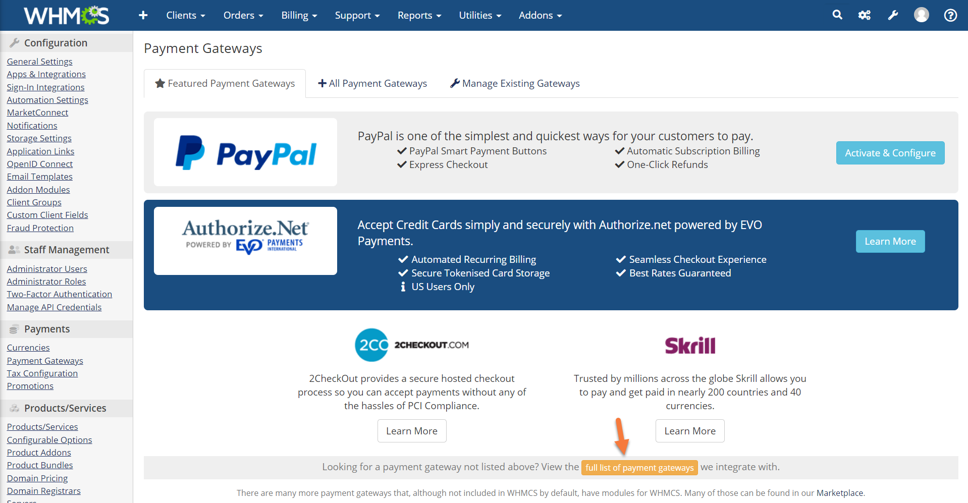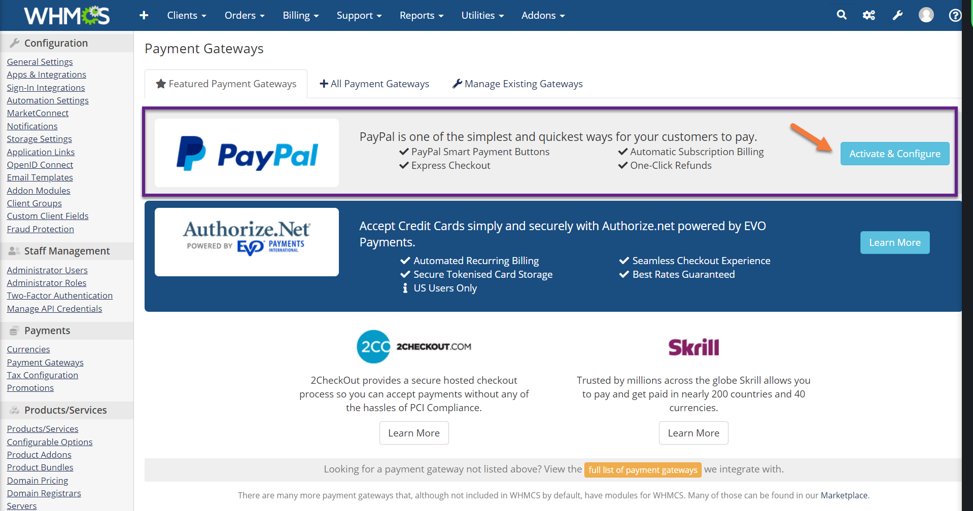 And that concludes our tutorial on configuring Payment Gateways in the WHMCS app.