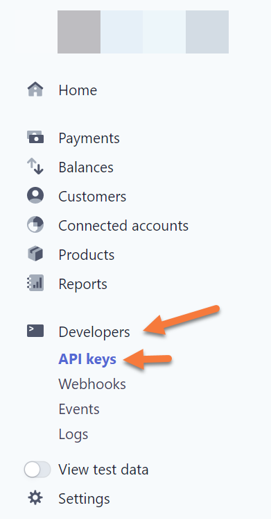 Step 4: To obtain this information, you’ll need to log in to your Stripe account and click Developers from the row of options on the left, then API Keys.