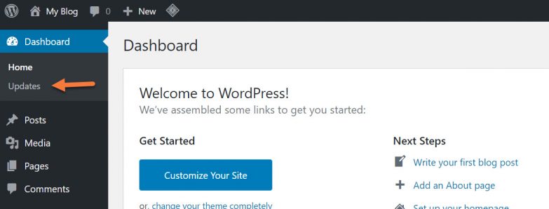 The easiest way to fix this error and the first thing you should try is to update your WordPress installation to the most recent version. To do this, just log in to your /wp-admin and click Updates from the left: