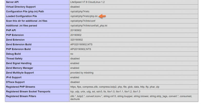 The entry should match up with the Loaded Configuration File path. In the above example, you’ll notice that it displays the correct extension directory path for the PHP version installed on our server.