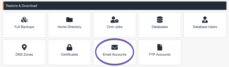 Step 3: Once Jetbackup 5 opens, click Email accounts to open the file restoration tool.