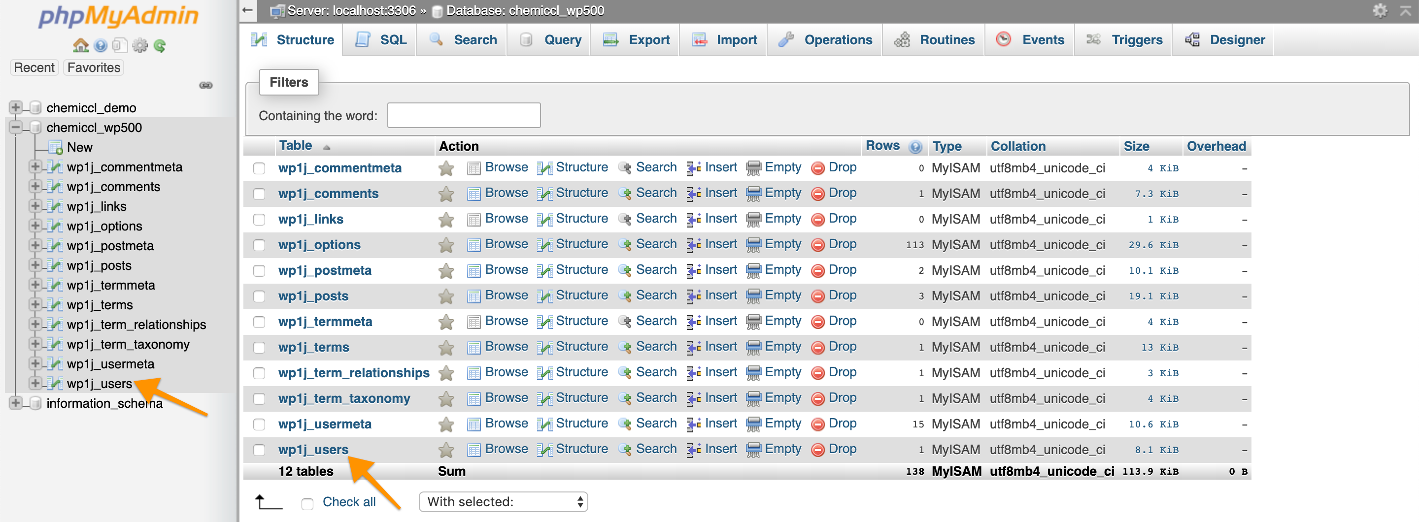 1) You’ll have to locate first the ID number for your WordPress admin username. Open the wp_users or xxx_users table in the database as highlighted. (wp_ is just the prefix, your table prefix may be different)